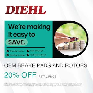 At Diehl Automotive, we want to make sure that your vehicle is properly inspected, and you receive top service for inspections and brake replacement. Don’t miss out on our Brake Specials this month and schedule your Service Appointment today at Diehl Hyundai of Sharon!