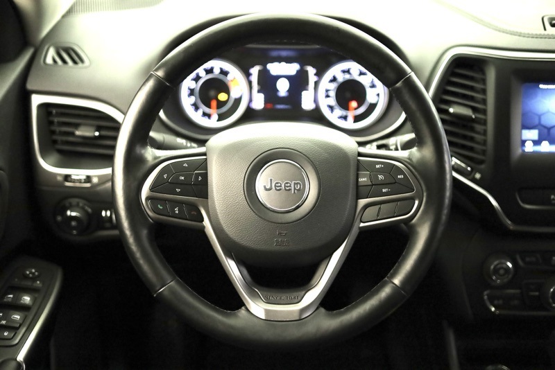 **CARFAX ONE OWNER**, **ALL WHEEL DRIVE**, **BLUETOOTH HANDS FREE PHONE**, **LEATHER**, **BACK-UP CAMERA**, **FACTORY REMOTE START**, **HEATED STEERING WHEEL**, **HEATED FRONT SEATS**, **APPLE CARPLAY / ANDROID AUTO**, **REAR PARKING SONAR**, **7" TOUCHSCREEN RADIO**, **BLIND SPOT DETECTION**, 3.734 Axle Ratio, 4-Wheel Disc Brakes, 6 Speakers, ABS brakes, Air Conditioning, All-Season Floor Mats, Alloy wheels, AM/FM radio: SiriusXM, Anti-whiplash front head restraints, Apple CarPlay/Android Auto, AutoStick Automatic Transmission, Auxiliary Transmission Oil Cooler, Brake assist, Bumpers: body-color, Cloth/Premium Vinyl Bucket Seats, Cold Weather Group, Compass, Delay-off headlights, Driver door bin, Driver vanity mirror, Dual front impact airbags, Dual front side impact airbags, Electronic Stability Control, Engine Block Heater, Four wheel independent suspension, Front anti-roll bar, Front Bucket Seats, Front Center Armrest, Front fog lights, Front reading lights, Fully automatic headlights, Heated door mirrors, Heated Front Seats, Heated Steering Wheel, Illuminated entry, Integrated Voice Command w/Bluetooth, Knee airbag, Leather Shift Knob, Low tire pressure warning, Normal Duty Suspension, Occupant sensing airbag, Outside temperature display, Overhead airbag, Overhead console, Panic alarm, ParkView Rear Back-Up Camera, Passenger door bin, Passenger vanity mirror, Power door mirrors, Power driver seat, Power steering, Power windows, Quick Order Package 2BD, Radio data system, Radio: Uconnect 4 w/7" Display, Rear anti-roll bar, Rear reading lights, Rear seat center armrest, Rear side impact airbag, Rear window defroster, Rear window wiper, Remote keyless entry, Remote Start System, Roof rack: rails only, SiriusXM Satellite Radio, Speed control, Speed-sensing steering, Split folding rear seat, Spoiler, Steering wheel mounted audio controls, Stop-Start Multiple VSM System, Tachometer, Telescoping steering wheel, Tilt steering wheel, Traction control, Trip computer, Turn signal indicator mirrors, USB Host Flip, Variably intermittent wipers, Voltmeter, Wheels: 17" x 7" Satin Carbon Aluminum, Windshield Wiper De-Icer. CARFAX One-Owner. Sting-Gray Clearcoat 2020 Jeep Cherokee Latitude Plus 4WD 9-Speed 948TE Automatic 2.4L I4