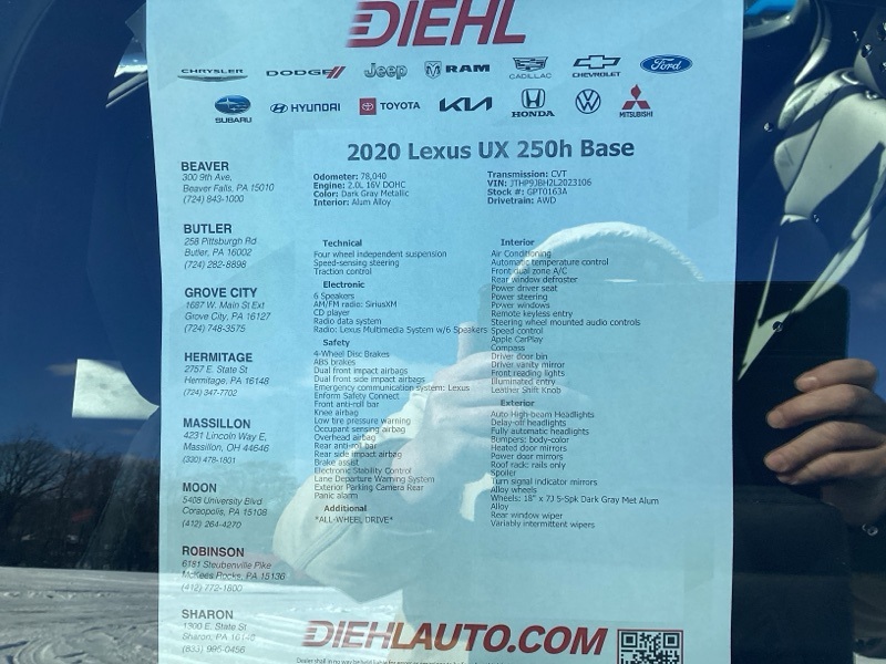 Dark Gray Metallic 2020 Lexus UX 250h Base 4D Sport Utility AWD 2.0L 16V DOHC CVT