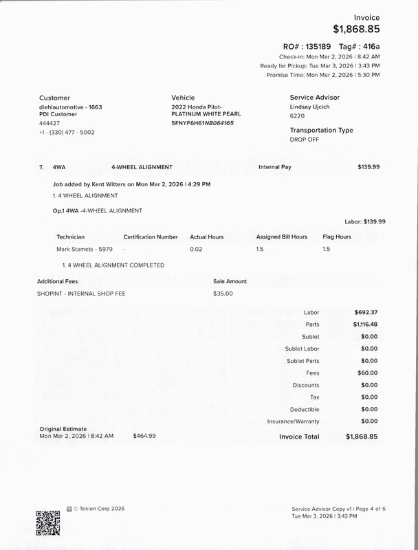 Diehl Automotive utilizes a system that generates market value pricing automatically for new and pre-owned vehicles and may cause errors, inaccuracies, or omissions. Some aftermarket additions or accessories may not be displayed properly. For accuracy, please contact the dealer for real-time, accurate pricing. A documentation fee of $477 applies and is not included in the pricing. Tax, Title, and Tags are also not included and must be paid by the purchaser. Some prices may include manufacturer-to-dealer offers that are not compatible with manufacturer special finance programs and/or lease offers. While great effort is made to ensure the accuracy of the information on this site, errors do occur so please verify information with a customer service rep. This is easily done by calling us at {dealer.phone} or by visiting us at the dealership.