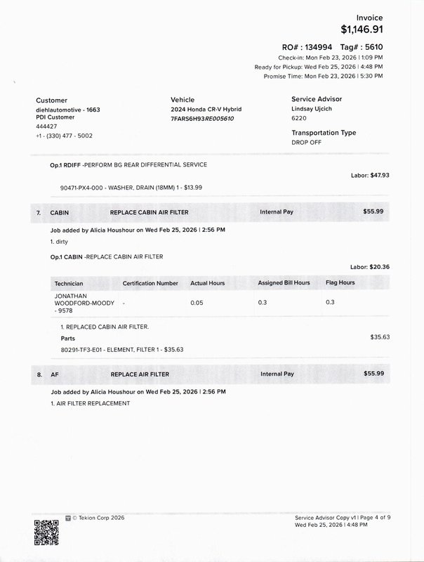 - Cabin air filter