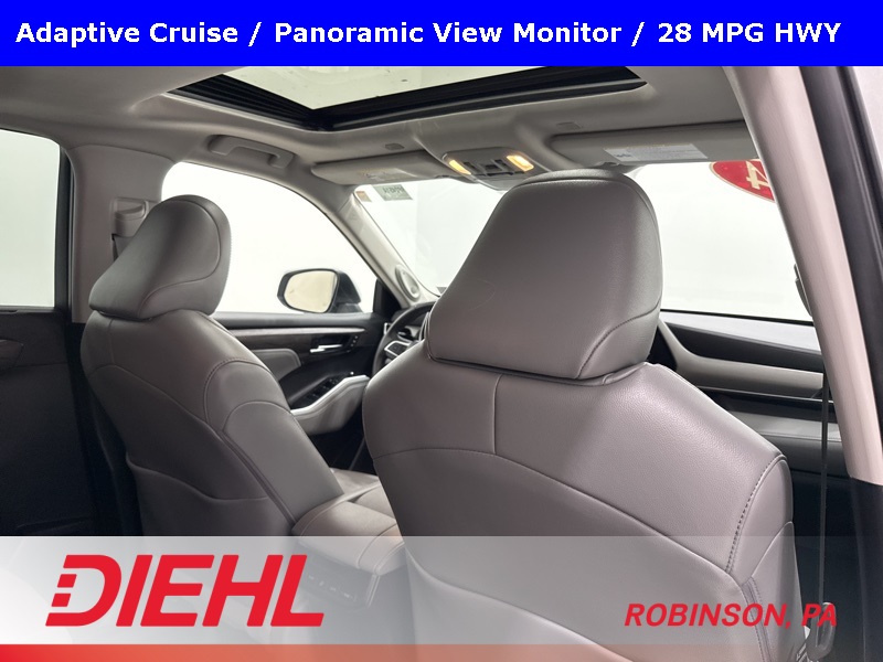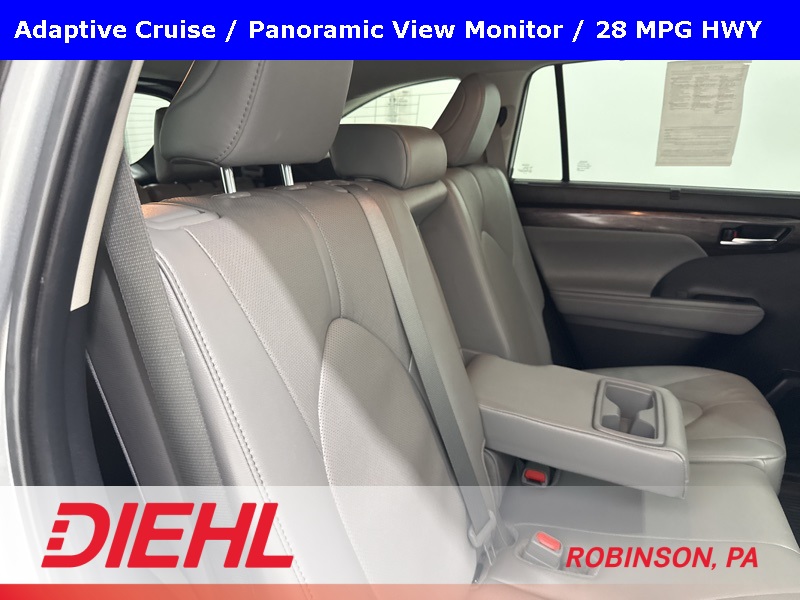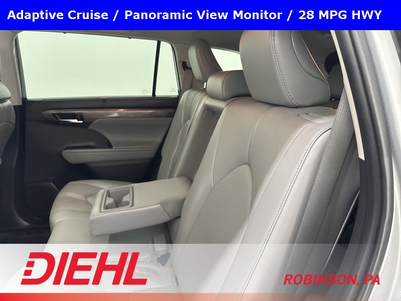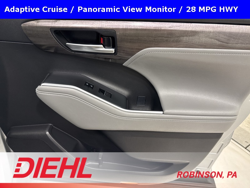 Inside, the Highlander Limited focuses on comfort and convenience with leather-trimmed seating, power first-row windows with one-touch up and down, driver information center, and cargo-area concealed storage. Technology is simple and functional, featuring steering-wheel-mounted controls, two front LCD monitors, window grid diversity antenna, and Safety Connect with trial subscription, keeping essential information and assistance close at hand.