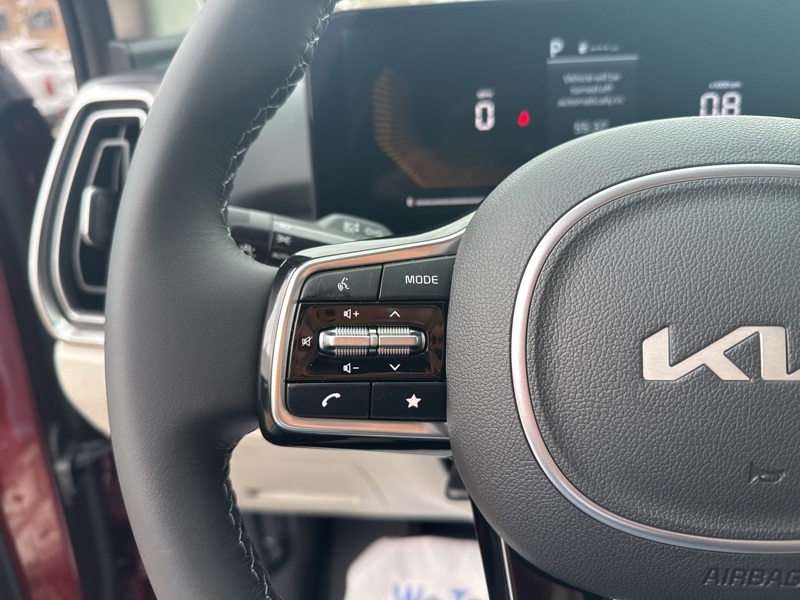 **BACK UP SENSOR**, *KEYLESS START*, **3RD ROW SEATING**, *ALL WHEEL DRIVE*, **BACK UP CAMERA**, **ANDROID AUTO**, **APPLE CAR PLAY**, **HEATED SEATS**, **LANE KEEP ASSIST**, **LEATHER**, **NAVIGATION**, **POWER DRIVERS SEAT**, AWD. Certified. Dawning Red 2025 Kia Sorento S AWD 8-Speed Automatic 2.5L I4 DGI DOHC 16V LEV3-SULEV30 191hp