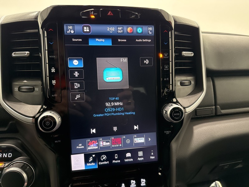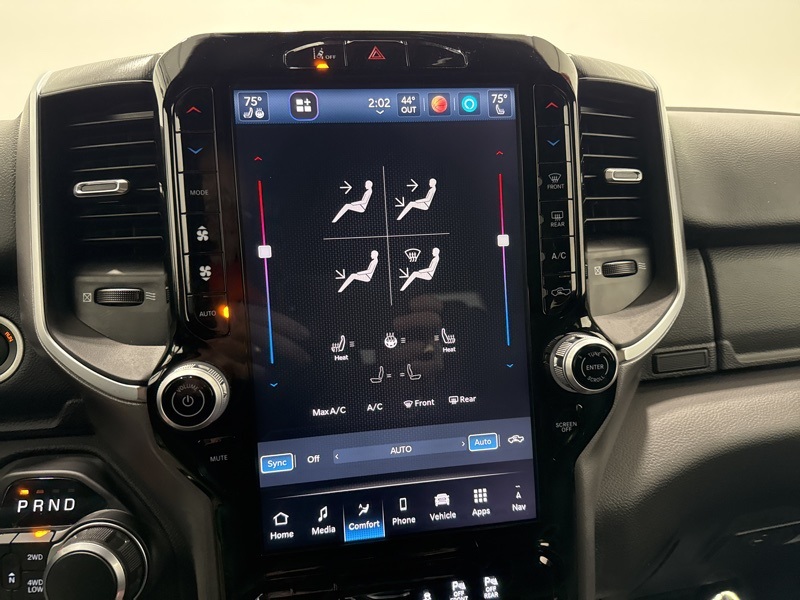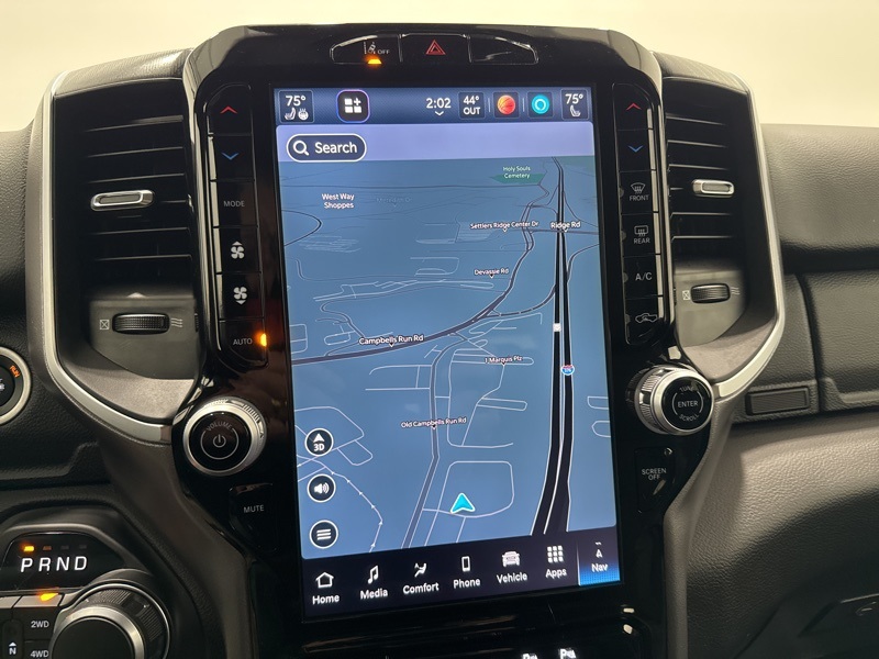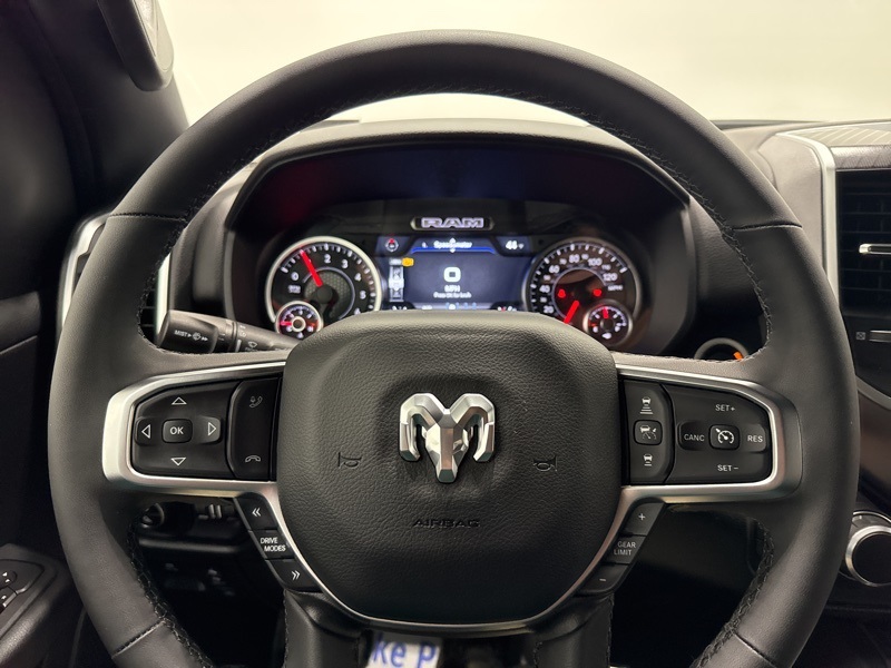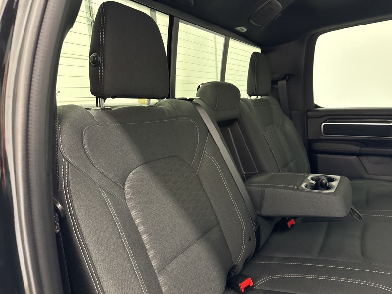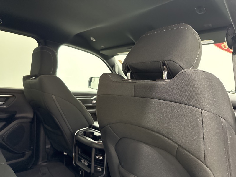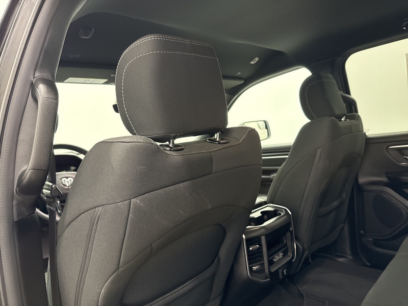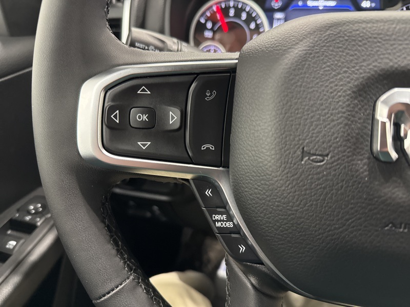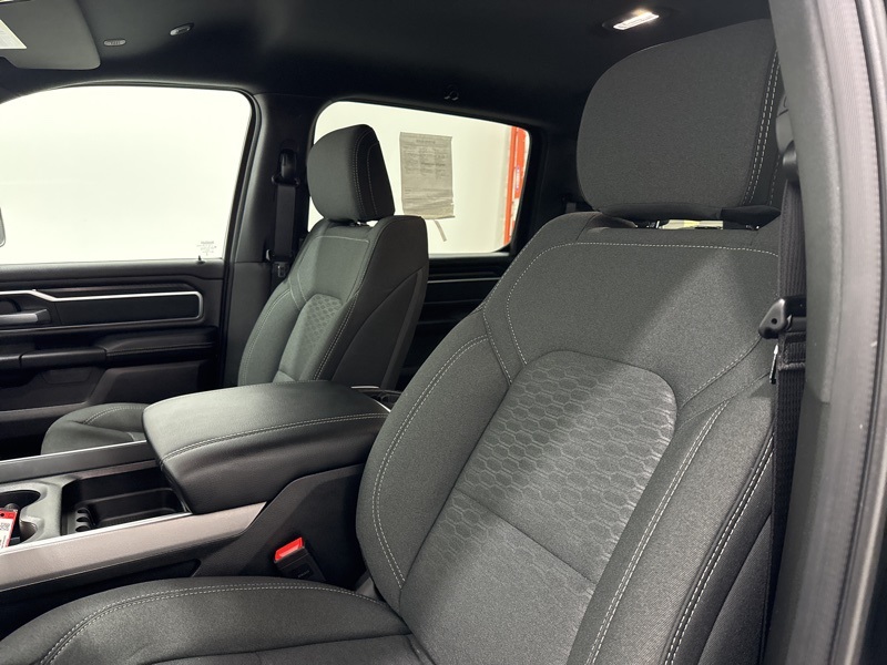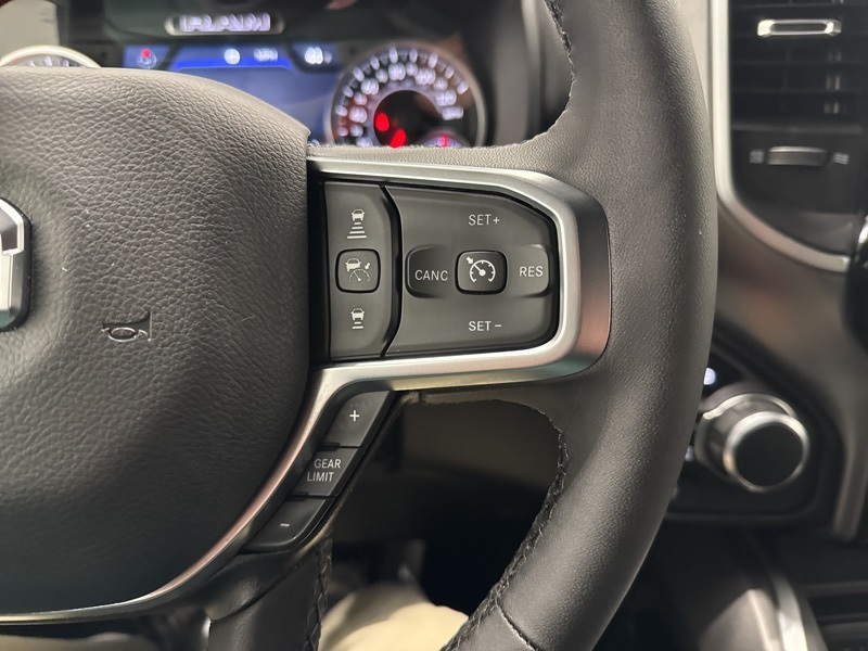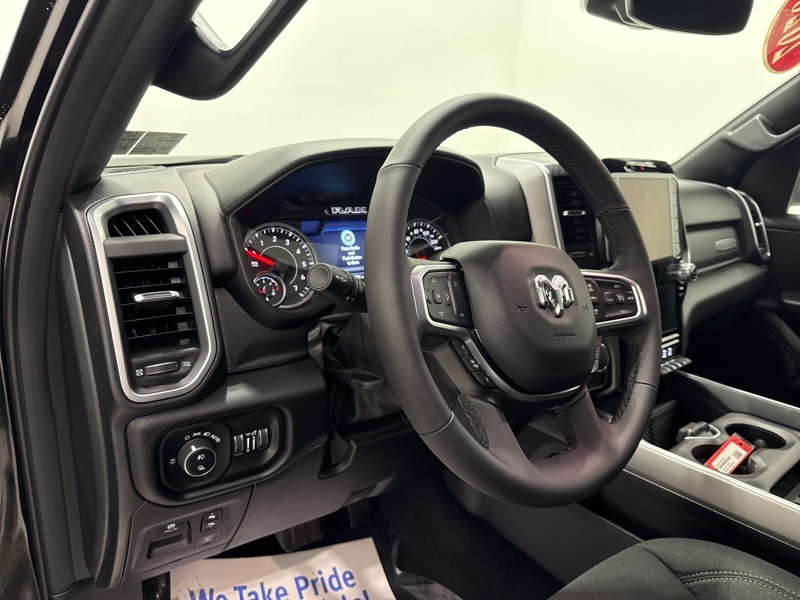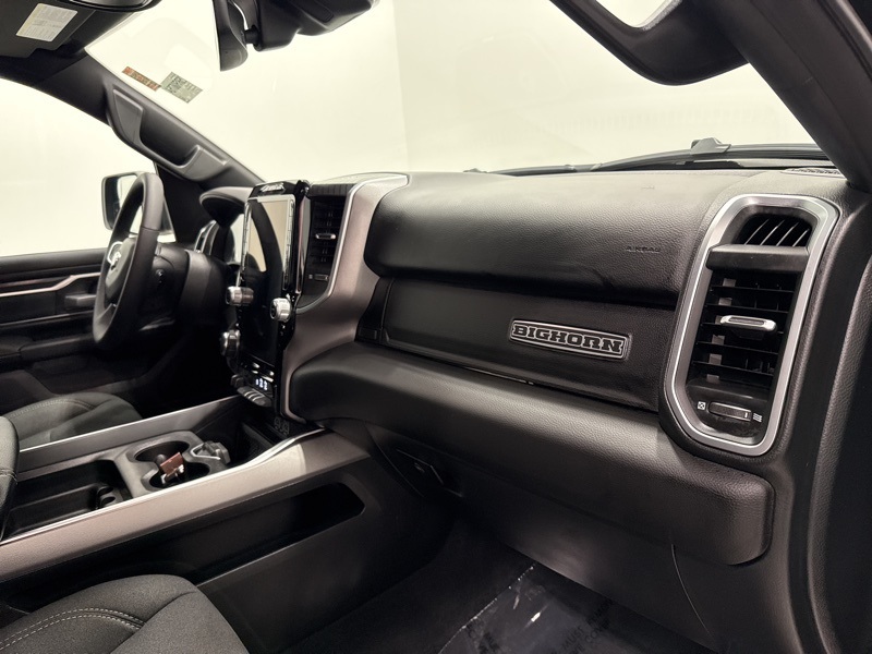 Inside the Crew Cab, the Big Horn trim adds real convenience with a 12-inch touchscreen, 7-inch digital cluster, Apple CarPlay and Android Auto, and dual-zone automatic climate control. Comfort features like power-adjustable pedals, heated front seats, heated steering wheel, and power driver seat make long drives easier, while the rear under-seat storage, spray-in bedliner, and bed utility group add everyday practicality. Safety and driver-assist tech include blind-spot monitoring, front and rear park assist, adaptive cruise control, lane management, and full-speed forward collision warning. Finished with all-season tires, LED lighting, and Big Horn styling touches, this Ram strikes an excellent balance between muscle, technology, and comfort—ready to handle real truck duties without giving up refinement.